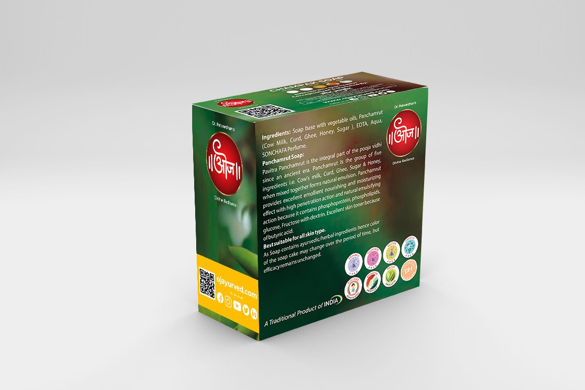 Rub Oj Champaka Panchamrut Soap on wet skin to complete body.